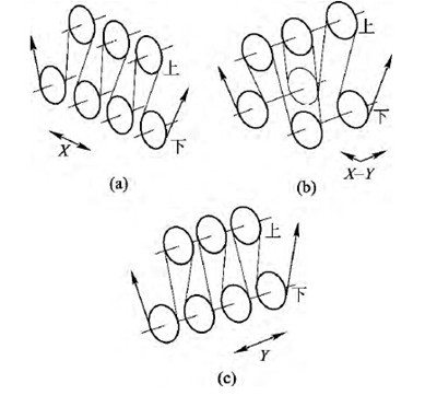 2) X-Y 復合式排列,鏈條交錯多扭曲嚴重,但焊接式鉤架比較結實; 3) 同軸式結構,結構緊湊,組裝方便,鏈條Y曲,適合鏈條行數較多場合.