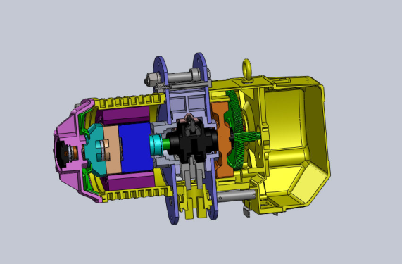 (1)電機(jī)軸線垂直于卷筒軸線的電動(dòng)葫蘆采用蝸輪傳動(dòng)裝置,寬度方面尺寸大,?結(jié)構(gòu)笨重,?機(jī)械效率低,?加工較困難已沒有廠家生產(chǎn)這種結(jié)構(gòu)型式的產(chǎn)品了。