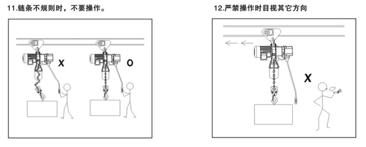 環(huán)鏈電動(dòng)葫蘆在使用中有很多方面是需要注意的,凌鷹根據(jù)多年的行業(yè)經(jīng)驗(yàn)總結(jié)了一些使用守則,下面通過(guò)一組圖片進(jìn)行解說(shuō)。