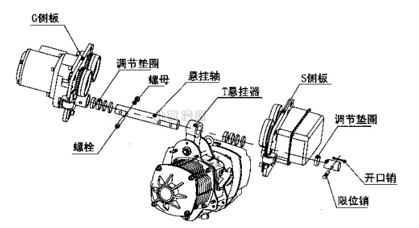 1、? 將懸掛軸插入側板G,并用懸掛軸螺栓、螺母將其鎖定