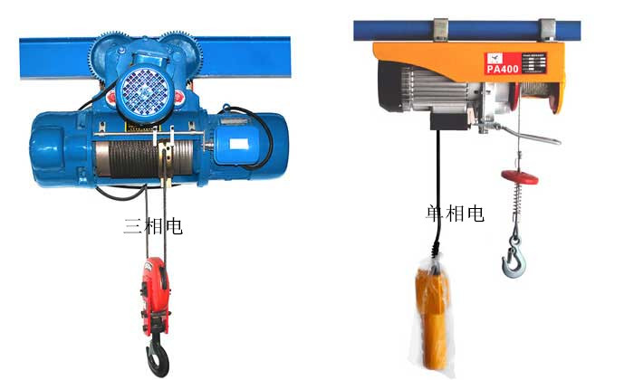電動葫蘆有單相電和三相電之分,單相電和三相電的電動葫蘆有一定的區(qū)別,單相電電動葫蘆適用于家庭電壓220V,三相電電動葫蘆適用于工業(yè)用電380V。