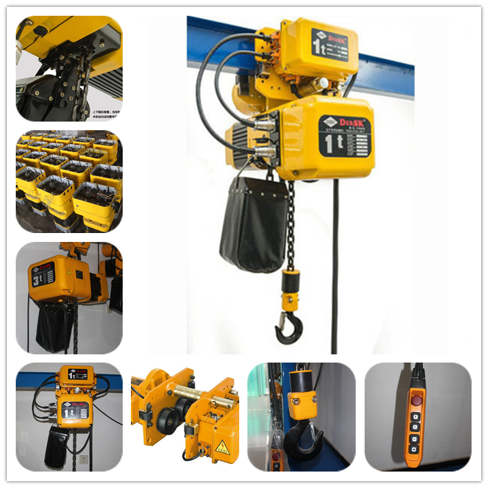 環鏈電動葫蘆既可固定懸掛使用,又可配電動單軌小車及手推/手拉單軌小車行走使用。